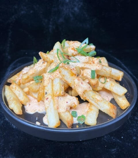 Spice up your taste buds with crispy potato fries topped with roasted corn, cotija cheese, chipotle aioli, sprinkled with smoked paprika